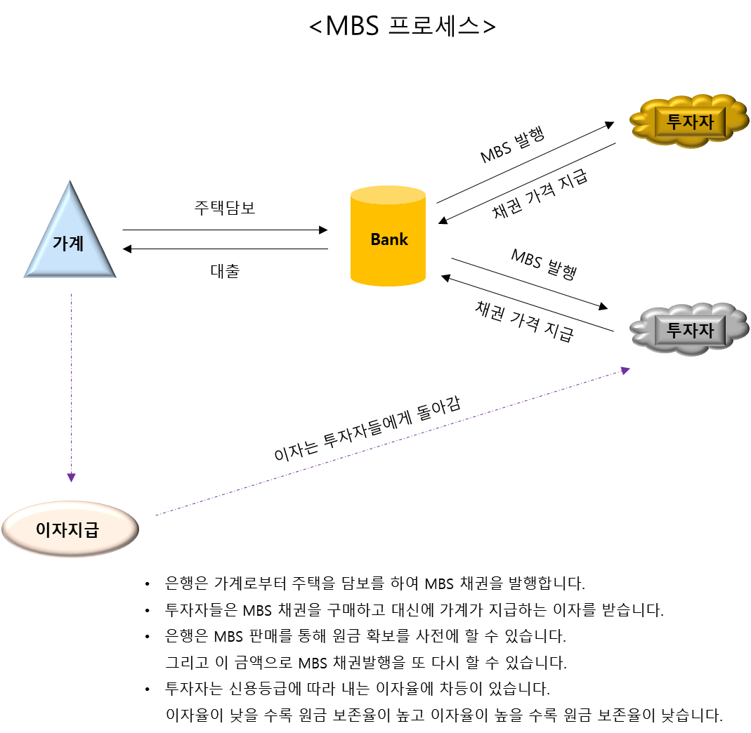 대출을 기반으로 하는 채권인 MBS(Mortgage Backed Securities, 주택저당증권)를 발행하였습니다.